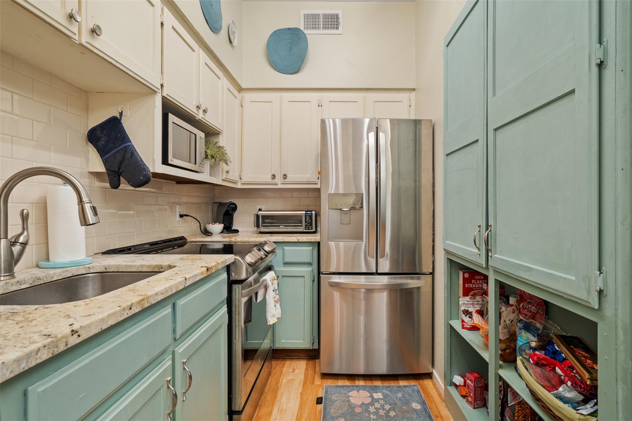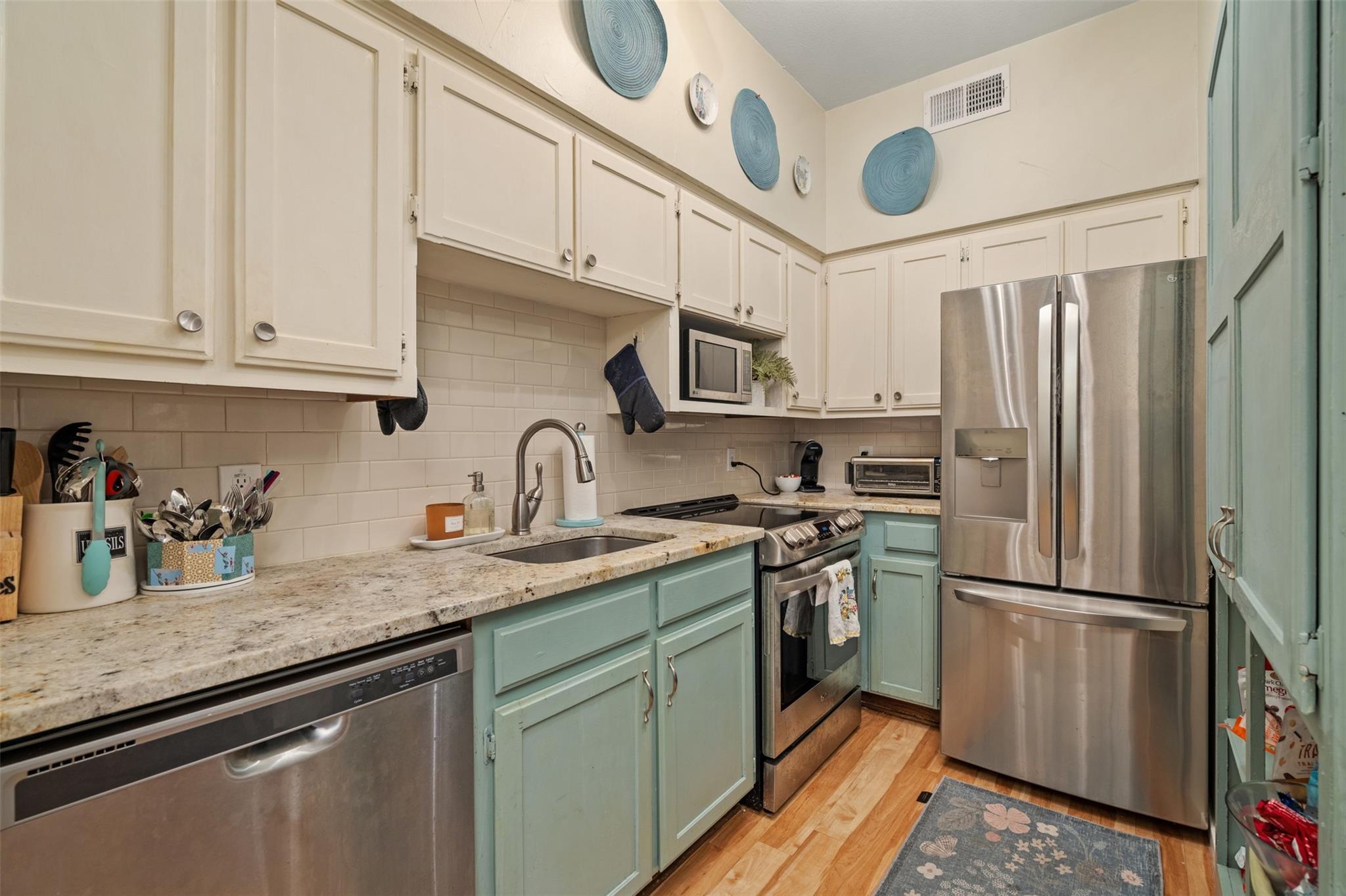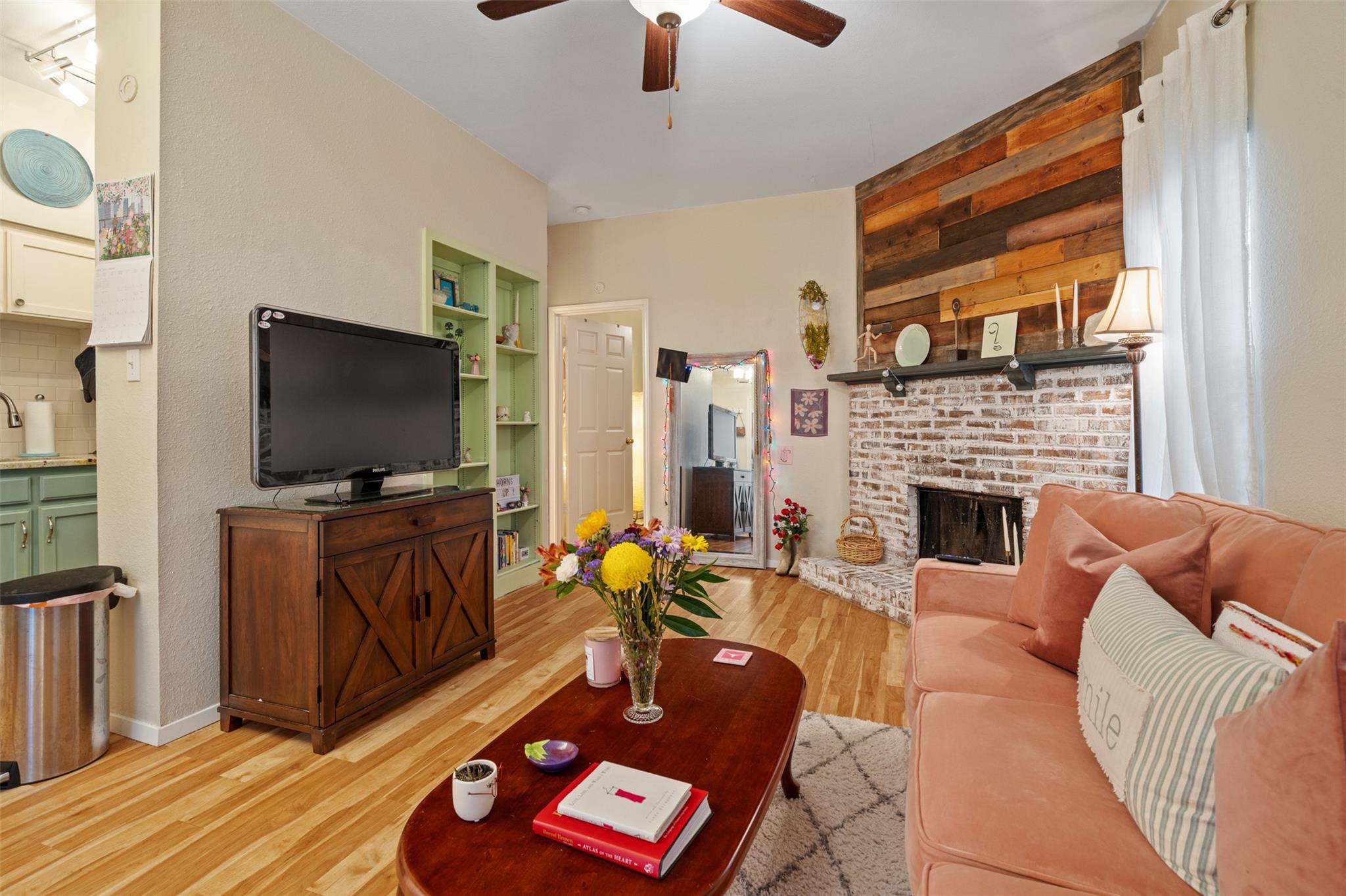 There is " No Place Like Home" is what you will say when your inside this Modern Country Condo on West Campus. Gleaming Oak laminate floors. Cozy brick fireplace with Barn Wood Chimney Stack. Farmhouse Kitchen with Stainless Appliances and Granite Counters. State of the art Wash Tower Laundry Center. Enormous Bedroom with Spacious Walk in Closet. Beautifully appointed bathroom with quarts counter topped vanity Picture Mirror, and LED lighting. Elms is a Small Most friendly Condo Community just a few blocks NW of the University of Texas. Gated with Controlled Access and Reserved Private Parking. Close to the iconic "Drag" you are walking distance to Everything UT and Austin. This includes Dirty's famous Hamburgers, Torchy's Tacos, Wheatsville Grocery, Main Bus Line, and the UT Campus. If you are looking for a place to feel home you have found it.
