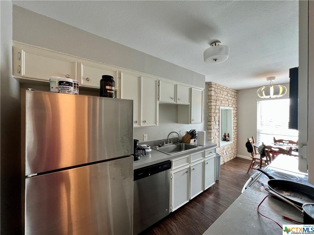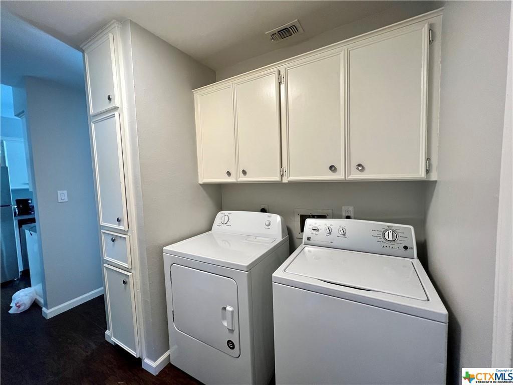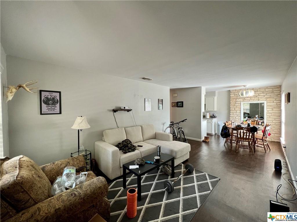 This duplex is located in the quiet neighborhood of Westover just minutes from TX State and IH-35 in the rapidly growing city of San Marcos. Do not disturb tenants, appointment only. Zoned for Crocket Elementary School and is nestled on a large corner lot. This unit offers 2 bedrooms and 1 bath, a well-sized open kitchen/living/dining area, walk-in closets, vinyl flooring throughout, washer/dryer units inside in a laundry room, and stainless steel appliances, with your own fully fenced yard. Available for move-in on September 17. Units are individually metered so Tenant is responsible for water, sewage, trash, yard service and internet. A fridge, washer and dryer are included!